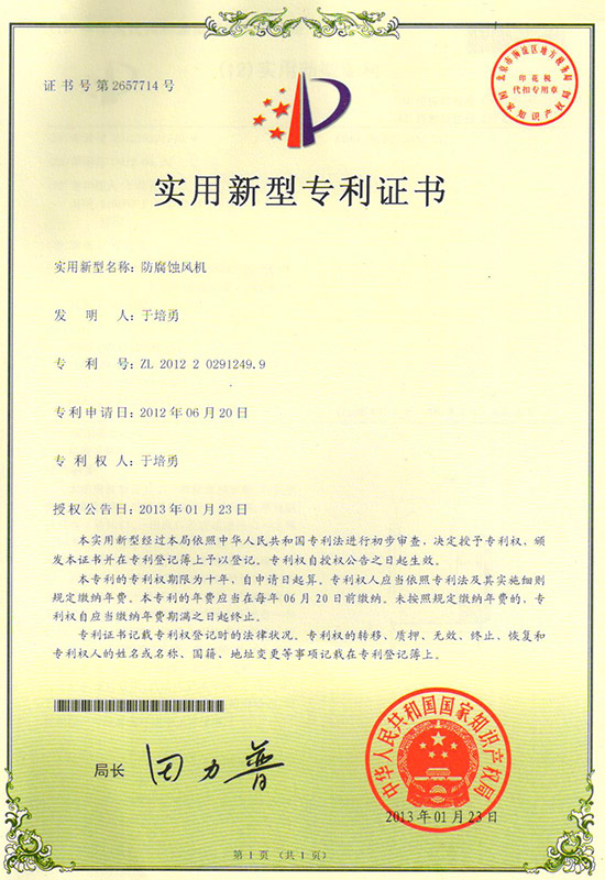 高溫煙氣脫硫除塵裝置實用新型專利證書